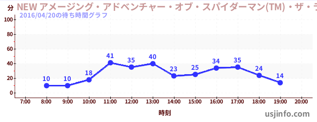 • NEW アメージング・アドベンチャー・オブ・スパイダーマン(TM)・ザ・ライド 4K3D$B$N(B2016年04月20日の待ち時間