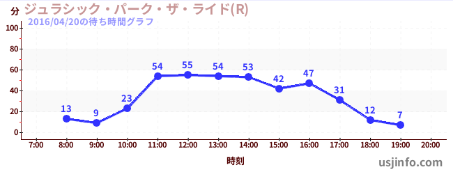 • ジュラシック・パーク・ザ・ライド(R)$B$N(B2016年04月20日の待ち時間