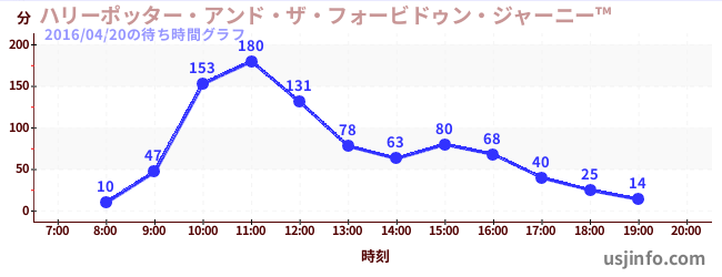 • ハリーポッター・アンド・ザ・フォービドゥン・ジャーニー™$B$N(B2016年04月20日の待ち時間