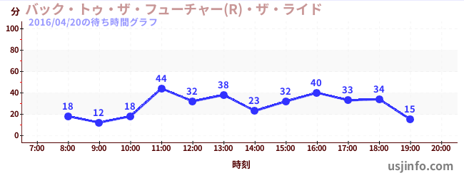 • バック・トゥ・ザ・フューチャー(R)・ザ・ライド$B$N(B2016年04月20日の待ち時間