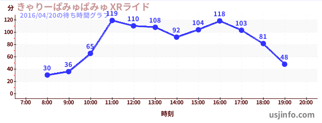 • きゃりーぱみゅぱみゅ XRライド$B$N(B2016年04月20日の待ち時間
