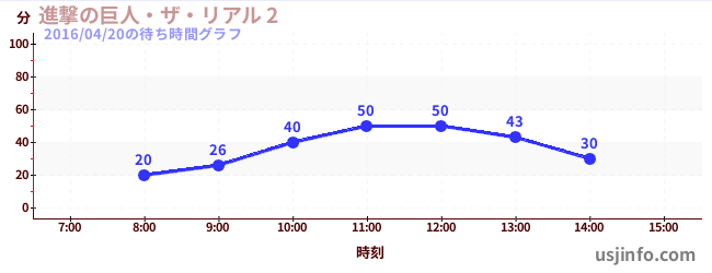 • 進撃の巨人・ザ・リアル 2$B$N(B2016年04月20日の待ち時間