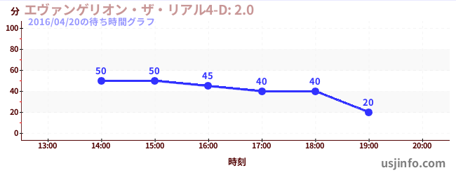 • エヴァンゲリオン・ザ・リアル4-D: 2.0$B$N(B2016年04月20日の待ち時間