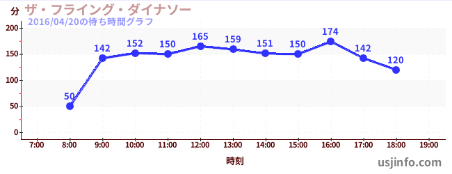 • ザ・フライング・ダイナソー$B$N(B2016年04月20日の待ち時間