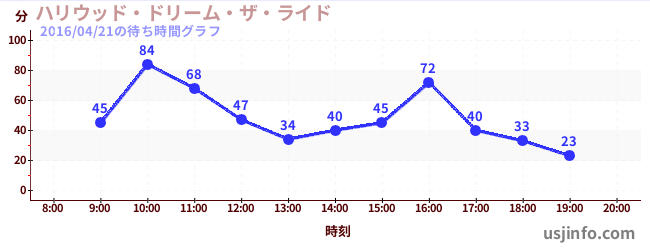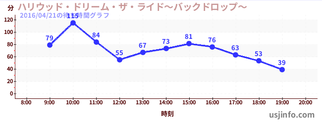 • ハリウッド・ドリーム・ザ・ライド〜バックドロップ〜$B$N(B2016年04月21日の待ち時間