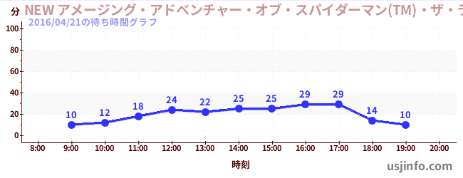 • NEW アメージング・アドベンチャー・オブ・スパイダーマン(TM)・ザ・ライド 4K3D$B$N(B2016年04月21日の待ち時間
