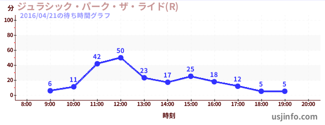 • ジュラシック・パーク・ザ・ライド(R)$B$N(B2016年04月21日の待ち時間