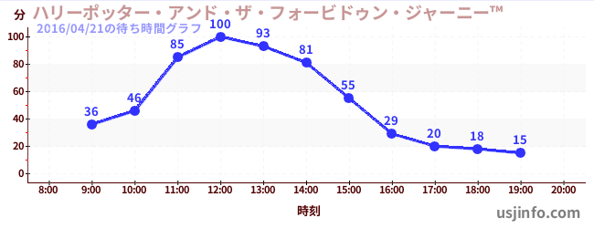 • ハリーポッター・アンド・ザ・フォービドゥン・ジャーニー™$B$N(B2016年04月21日の待ち時間