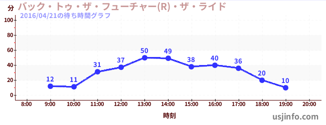 • バック・トゥ・ザ・フューチャー(R)・ザ・ライド$B$N(B2016年04月21日の待ち時間