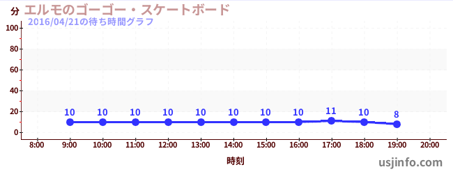 • エルモのゴーゴー・スケートボード$B$N(B2016年04月21日の待ち時間