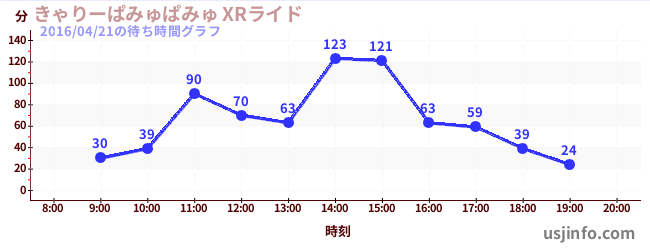 • きゃりーぱみゅぱみゅ XRライド$B$N(B2016年04月21日の待ち時間