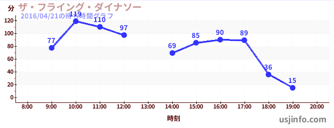 • ザ・フライング・ダイナソー$B$N(B2016年04月21日の待ち時間