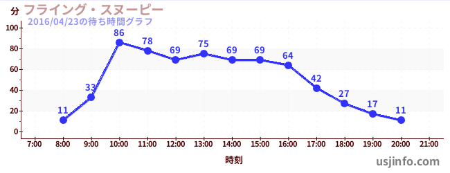 • フライング・スヌーピー$B$N(B2016年04月23日の待ち時間