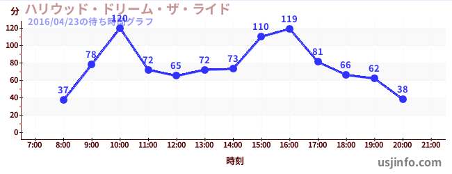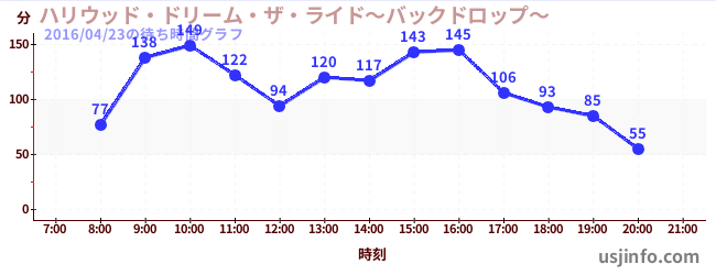 • ハリウッド・ドリーム・ザ・ライド〜バックドロップ〜$B$N(B2016年04月23日の待ち時間