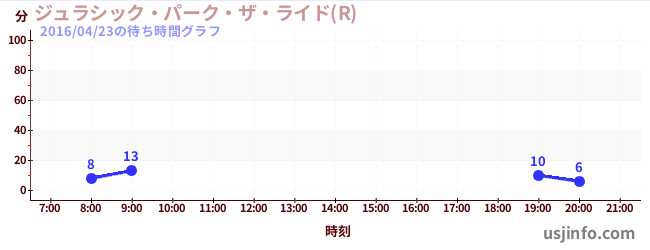 • ジュラシック・パーク・ザ・ライド(R)$B$N(B2016年04月23日の待ち時間