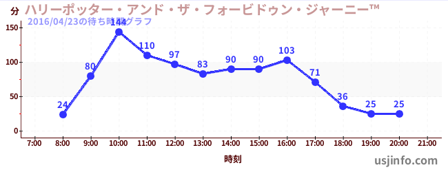 • ハリーポッター・アンド・ザ・フォービドゥン・ジャーニー™$B$N(B2016年04月23日の待ち時間