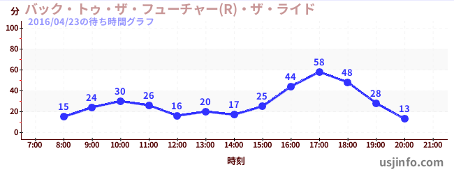 • バック・トゥ・ザ・フューチャー(R)・ザ・ライド$B$N(B2016年04月23日の待ち時間