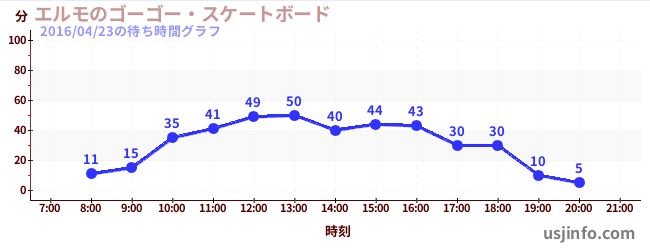 • エルモのゴーゴー・スケートボード$B$N(B2016年04月23日の待ち時間