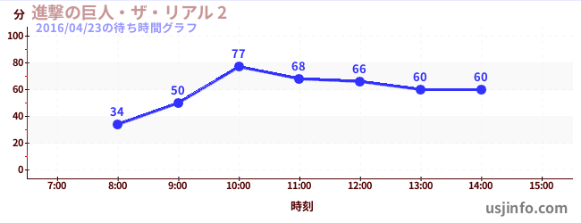 • 進撃の巨人・ザ・リアル 2$B$N(B2016年04月23日の待ち時間