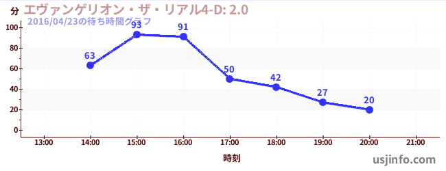• エヴァンゲリオン・ザ・リアル4-D: 2.0$B$N(B2016年04月23日の待ち時間