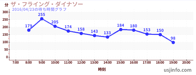 • ザ・フライング・ダイナソー$B$N(B2016年04月23日の待ち時間