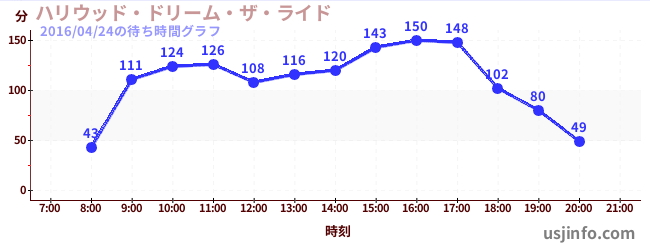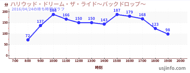 • ハリウッド・ドリーム・ザ・ライド〜バックドロップ〜$B$N(B2016年04月24日の待ち時間