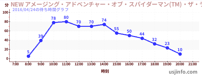 • NEW アメージング・アドベンチャー・オブ・スパイダーマン(TM)・ザ・ライド 4K3D$B$N(B2016年04月24日の待ち時間