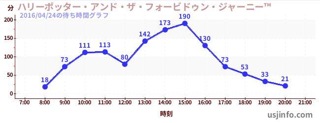 • ハリーポッター・アンド・ザ・フォービドゥン・ジャーニー™$B$N(B2016年04月24日の待ち時間