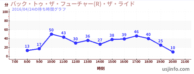 • バック・トゥ・ザ・フューチャー(R)・ザ・ライド$B$N(B2016年04月24日の待ち時間
