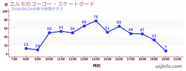 • エルモのゴーゴー・スケートボード$B$N(B2016年04月24日の待ち時間