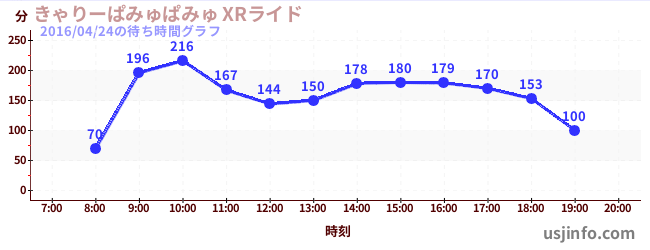 • きゃりーぱみゅぱみゅ XRライド$B$N(B2016年04月24日の待ち時間