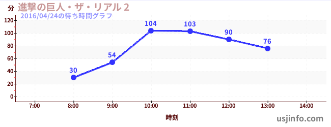 • 進撃の巨人・ザ・リアル 2$B$N(B2016年04月24日の待ち時間