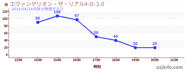• エヴァンゲリオン・ザ・リアル4-D: 2.0$B$N(B2016年04月24日の待ち時間