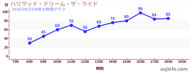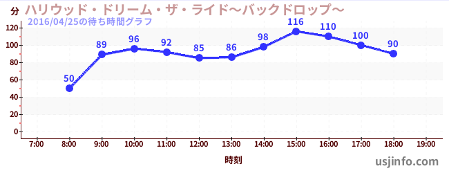 • ハリウッド・ドリーム・ザ・ライド〜バックドロップ〜$B$N(B2016年04月25日の待ち時間