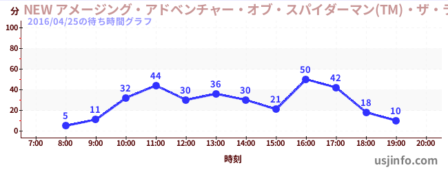 • NEW アメージング・アドベンチャー・オブ・スパイダーマン(TM)・ザ・ライド 4K3D$B$N(B2016年04月25日の待ち時間