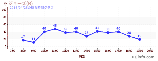 • ジョーズ(R)$B$N(B2016年04月25日の待ち時間