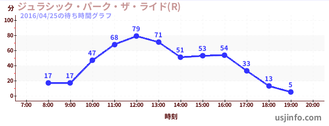 • ジュラシック・パーク・ザ・ライド(R)$B$N(B2016年04月25日の待ち時間