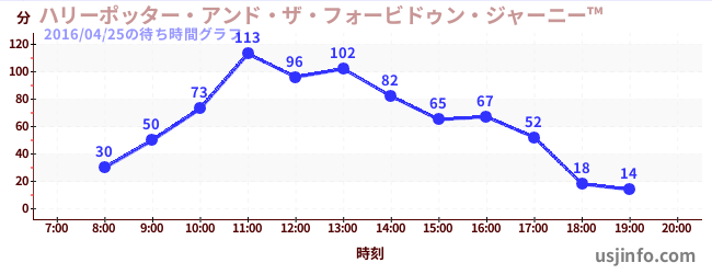 • ハリーポッター・アンド・ザ・フォービドゥン・ジャーニー™$B$N(B2016年04月25日の待ち時間
