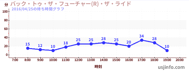 • バック・トゥ・ザ・フューチャー(R)・ザ・ライド$B$N(B2016年04月25日の待ち時間