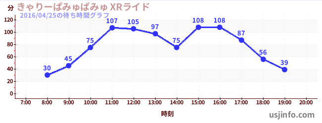 • きゃりーぱみゅぱみゅ XRライド$B$N(B2016年04月25日の待ち時間