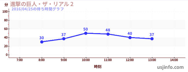 • 進撃の巨人・ザ・リアル 2$B$N(B2016年04月25日の待ち時間