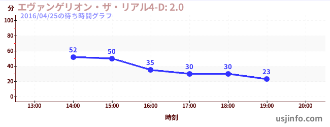 • エヴァンゲリオン・ザ・リアル4-D: 2.0$B$N(B2016年04月25日の待ち時間