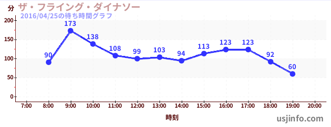 • ザ・フライング・ダイナソー$B$N(B2016年04月25日の待ち時間