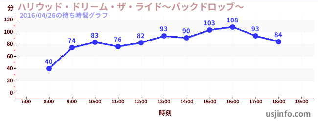 • ハリウッド・ドリーム・ザ・ライド〜バックドロップ〜$B$N(B2016年04月26日の待ち時間