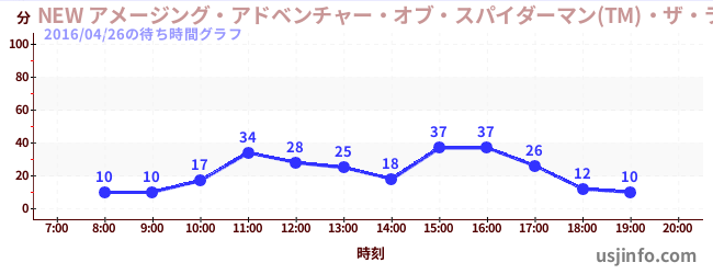 • NEW アメージング・アドベンチャー・オブ・スパイダーマン(TM)・ザ・ライド 4K3D$B$N(B2016年04月26日の待ち時間