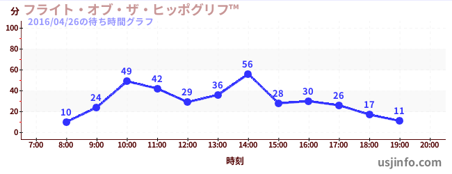 • フライト・オブ・ザ・ヒッポグリフ™$B$N(B2016年04月26日の待ち時間