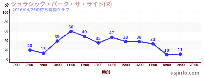 • ジュラシック・パーク・ザ・ライド(R)$B$N(B2016年04月26日の待ち時間