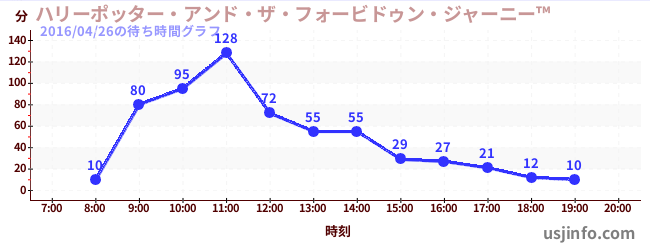 • ハリーポッター・アンド・ザ・フォービドゥン・ジャーニー™$B$N(B2016年04月26日の待ち時間