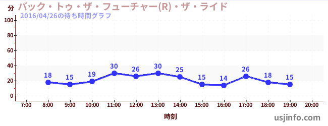 • バック・トゥ・ザ・フューチャー(R)・ザ・ライド$B$N(B2016年04月26日の待ち時間