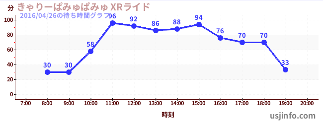 • きゃりーぱみゅぱみゅ XRライド$B$N(B2016年04月26日の待ち時間